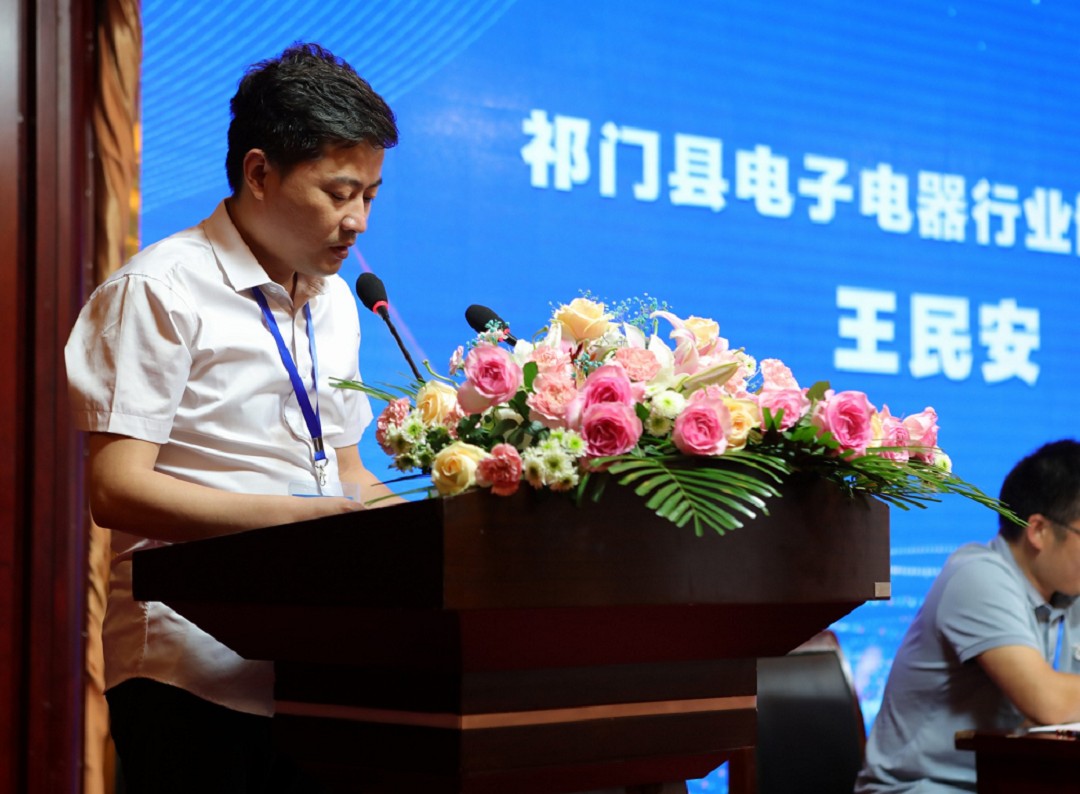 7月24日,由祁門縣多家電子電器企業(yè)發(fā)起,經(jīng)主管部門審批同意,祁門縣電子電器行業(yè)協(xié)會(huì)成立大會(huì)在祁紅國(guó)際大酒店舉行。公司總經(jīng)理王民安當(dāng)選為祁門縣電子電器行業(yè)協(xié)會(huì)首任會(huì)長(zhǎng)。